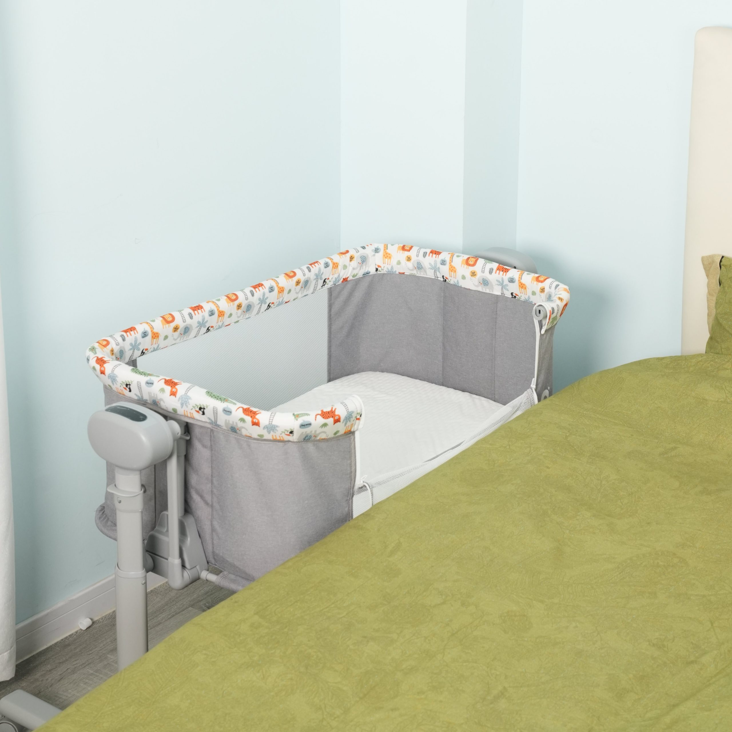 Krevetić poseduje 5 nivoa podešavanja visine, tako da se lako prilagođava različitim visinama kreveta roditelja.