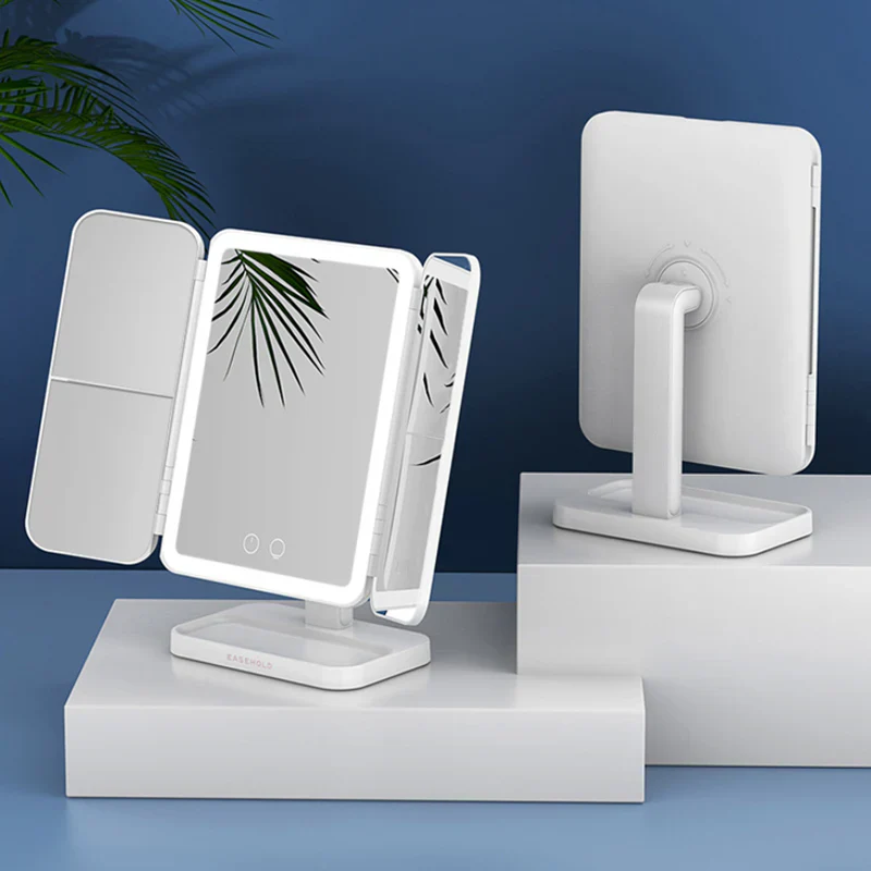Moderan izgled koji se uklapa u svaki prostor. Zahvaljujući stabilnom stalku i mogućnosti podešavanja ugla, ogledalo vam uvek pruža savršen pogled. Lako ga nosite i koristite bilo gde!