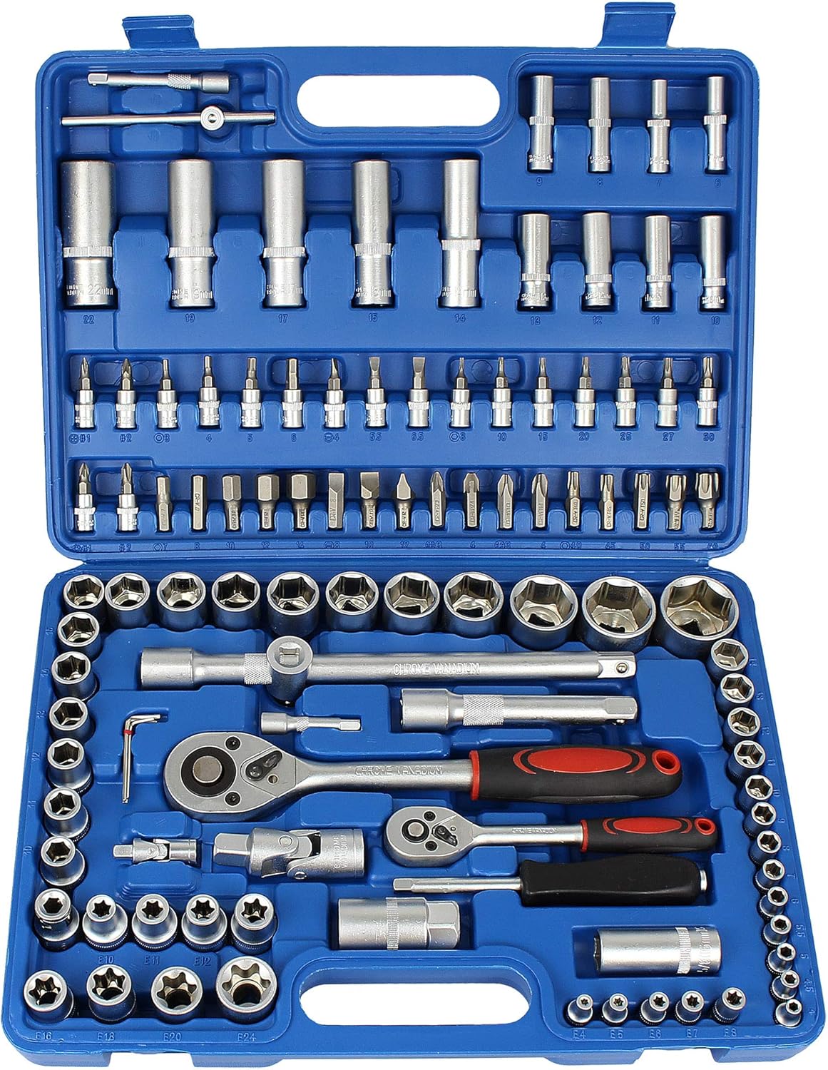 Ovaj profesionalni set alata izrađen je od kvalitetnog hrom-vanadijum čelika koji pruža dug vek trajanja, otpornost na habanje i pouzdan rad čak i pri većem opterećenju.