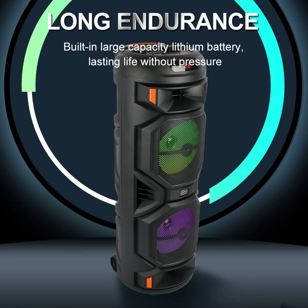 THUNDER Bluetooth zvučnik sa mikrofonom i daljinskim upravljačem donosi moćan zvuk i odličnu atmosferu za svaku priliku. Sa dva velika 8-inčna woofera, jakim basom i LED osvetljenjem, ovaj karaoke zvučnik je savršen izbor za žurke, rođendane, porodična okupljanja i proslave.