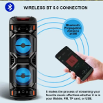 Uz bežični mikrofon koji dolazi u paketu možete odmah organizovati karaoke veče, prezentacije ili zabavu sa prijateljima. Zahvaljujući Bluetooth 5.0 povezivanju, zvučnik se lako povezuje sa telefonom, tabletom, laptopom, televizorom, računarom i drugim uređajima.